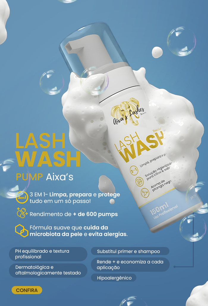 Minha retenção melhorou muito, aumentou muito a minha confiança no trabalho. Um produto que eu uso muito é o LashWash. as clientes elogiam muito que ele é cheiroso além de evitar o uso do soro pois ele ja abre as cutículas